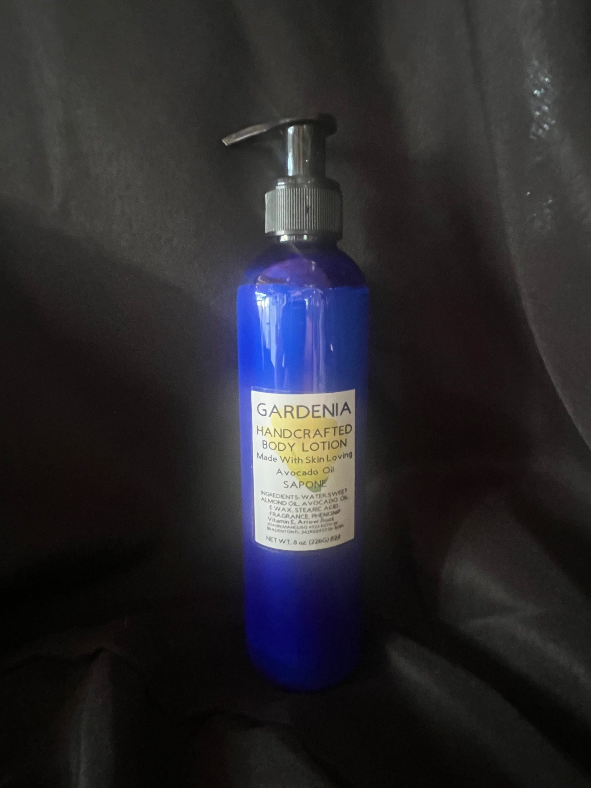 Made with skin loving almond and avocado oil for a big moisture that's light and fast absorbing. This lotion is scented with gardenia f o. This is a strong floral scent that is similar to jasmine and can be intoxicating.