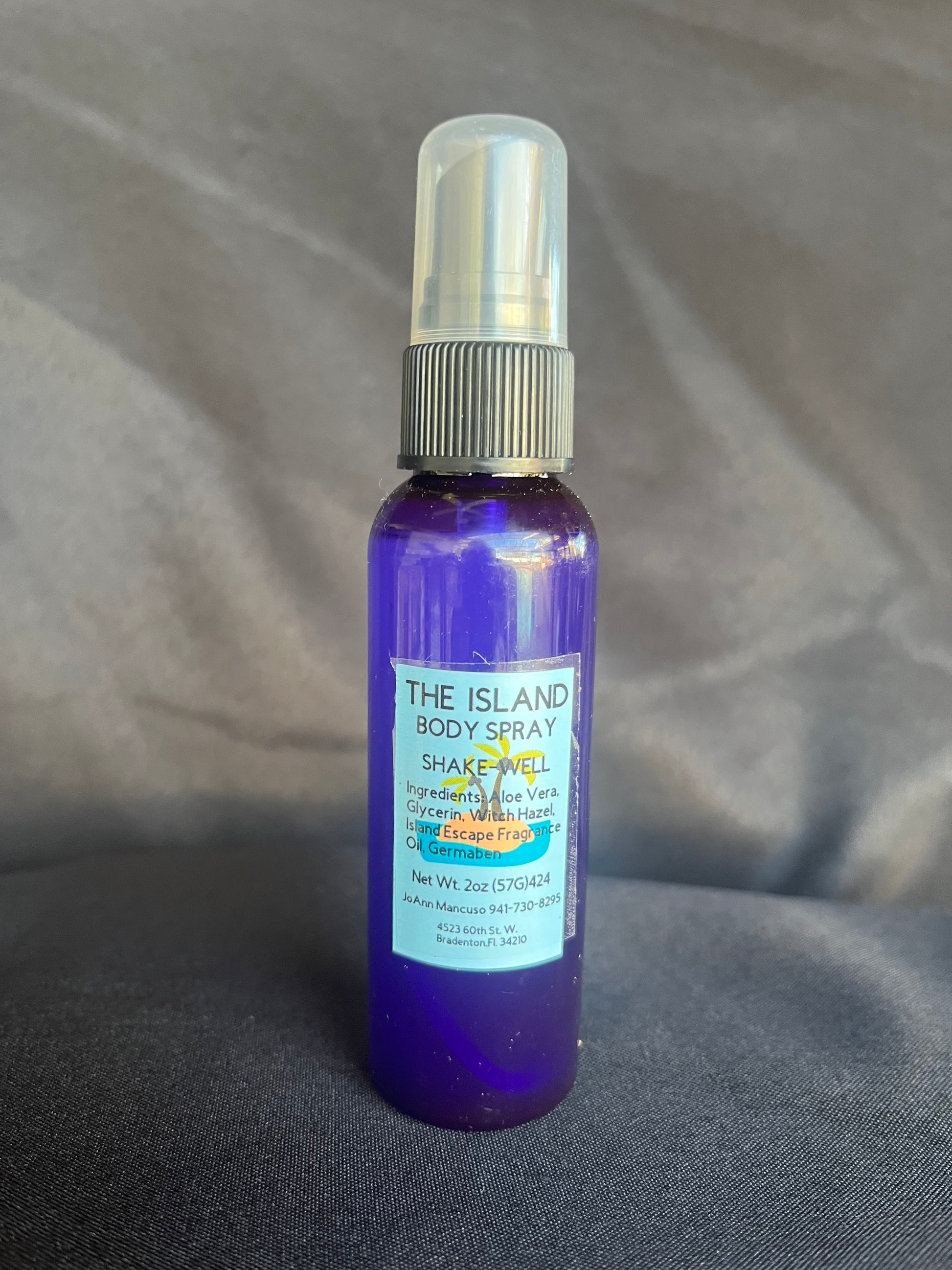 This body spray is perfect for your gym bag or purse. You can spritz anytime to refresh on the go. Island instantly refreshes you with this ready to use body spray This scent will transport you to the beach with it's coconut, mango and pineapple notes